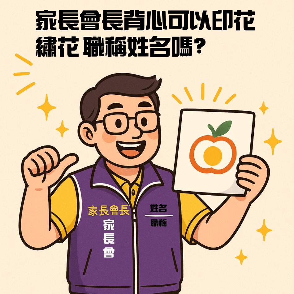 從早自習巡堂、校門口交通指揮、校慶園遊會、親師座談到各種校內大型活動,家長會背心幾乎無所不在。也因此,很多家長會在規劃制服訂做時,第一個問題就是:家長會長背心到底能不能印花?職稱可不可以放在胸口?姓名能不能加上去?會不會洗幾次就掉了?