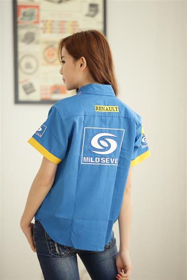 這款藍黃車隊制服,直接為汽車產業、活動賽事團體開新流派!RENAULT 車隊標準色,搭配LOGO繡花+品牌袖標,帥度直接破表。